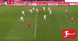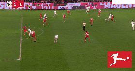 29’ 凱恩將球掃到門前,格納布里跟進(jìn)橫傳,倫納特·卡爾包抄破門,拜仁1比0領(lǐng)先。