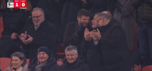 德甲第14輪拜仁主場對陣美因茨的比賽中,出現溫情一幕:第29分鐘格納布里助攻小將卡爾打破僵局后,看臺上的穆勒興奮得如同孩童般手舞足蹈、開懷大笑。坐在他身旁一同歡呼的正是拜仁體育總監埃貝爾等俱樂部管理層成員。